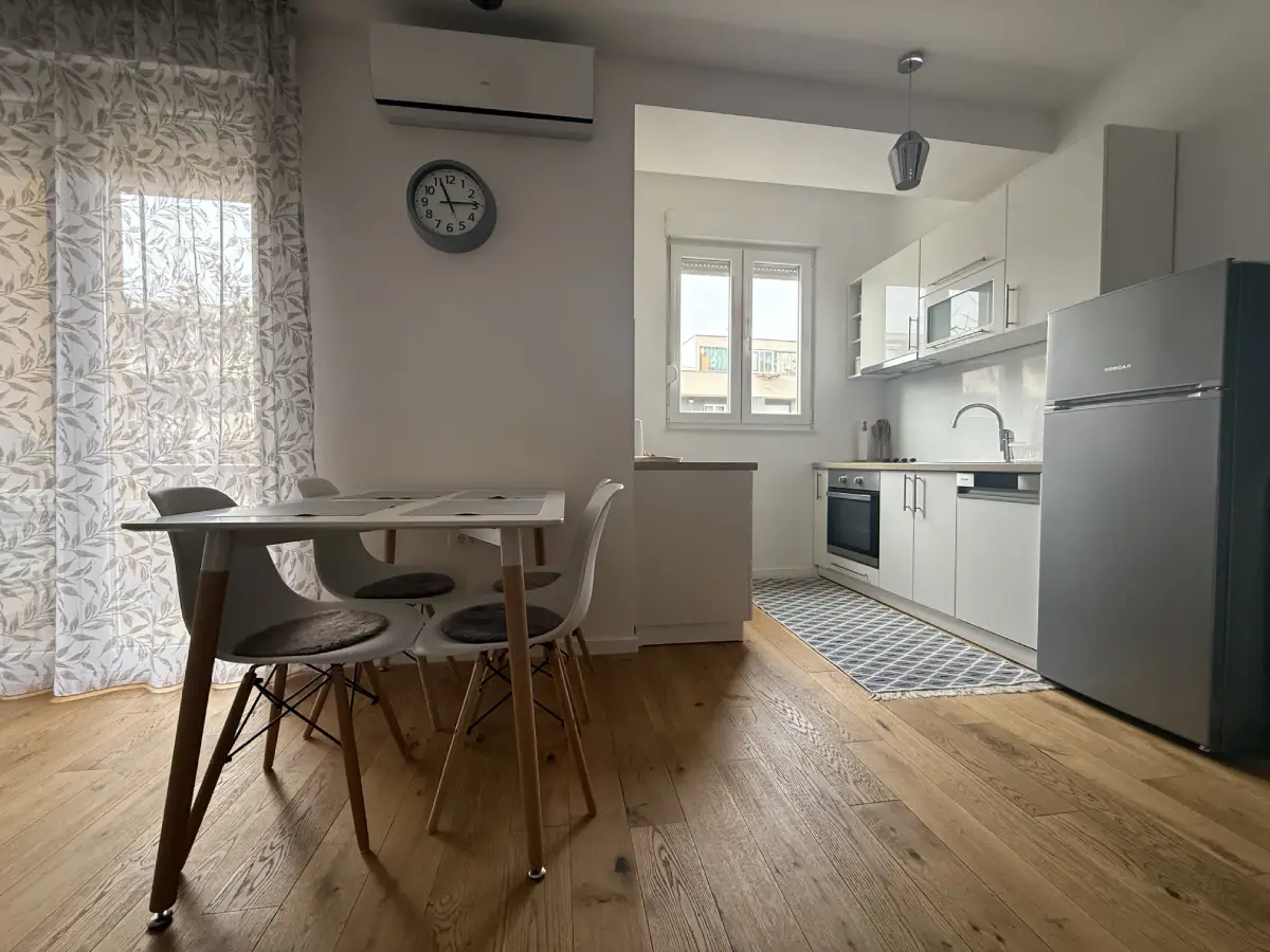 Daje se u najam trosoban potpuno namješten i renoviran stan u Mostaru u Ulici Kralja Tvrtka broj 26. Orjentacija stana je zapad istok. Stan se nalazi na drugom katu zgrade. Stan se sastoji od dnevnog boravka, trpezarije s kuhinjom, tri spavaće sobe, kupatila i odvojenog wc-a. Grijanje i hhlađenje u stanu je regulirano posebnim inverterima u svakoj sobi te dnevnom boravku. Stan posjeduje sve kućanske aparate koji u uključuju i sve mašine i kuhinjeske aparate. Sve tri sobe izlaze na balkon koji je orijentiran prema istoku. Pored stana je moguće iznajmiti i privatni parking koji se posebno plaća. Stan je moguće iznajmiti isključivo na duži period, odnosno minimalno 12 mjeseci.