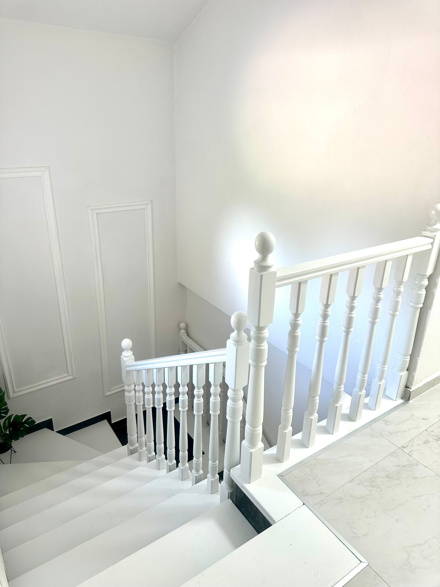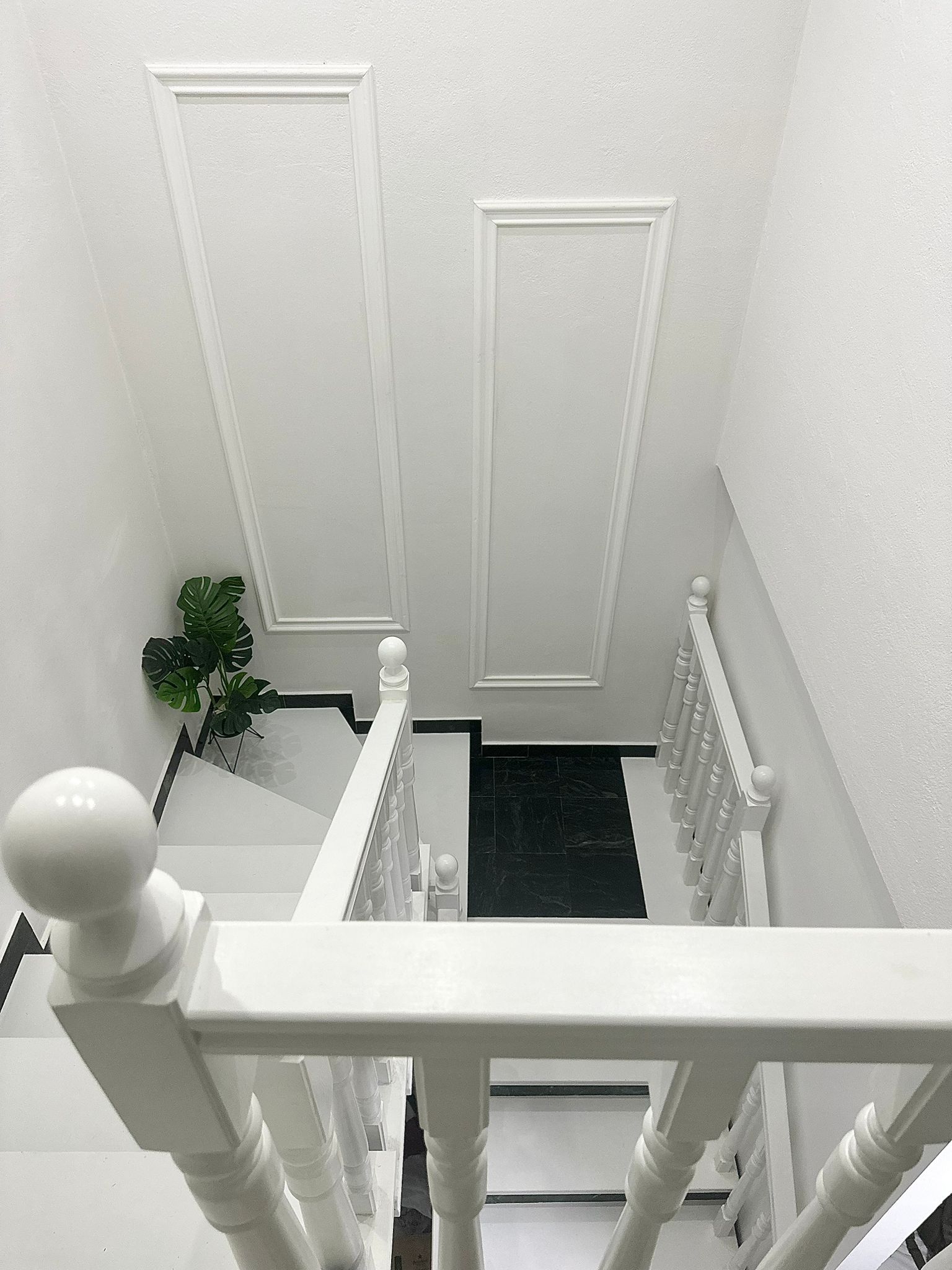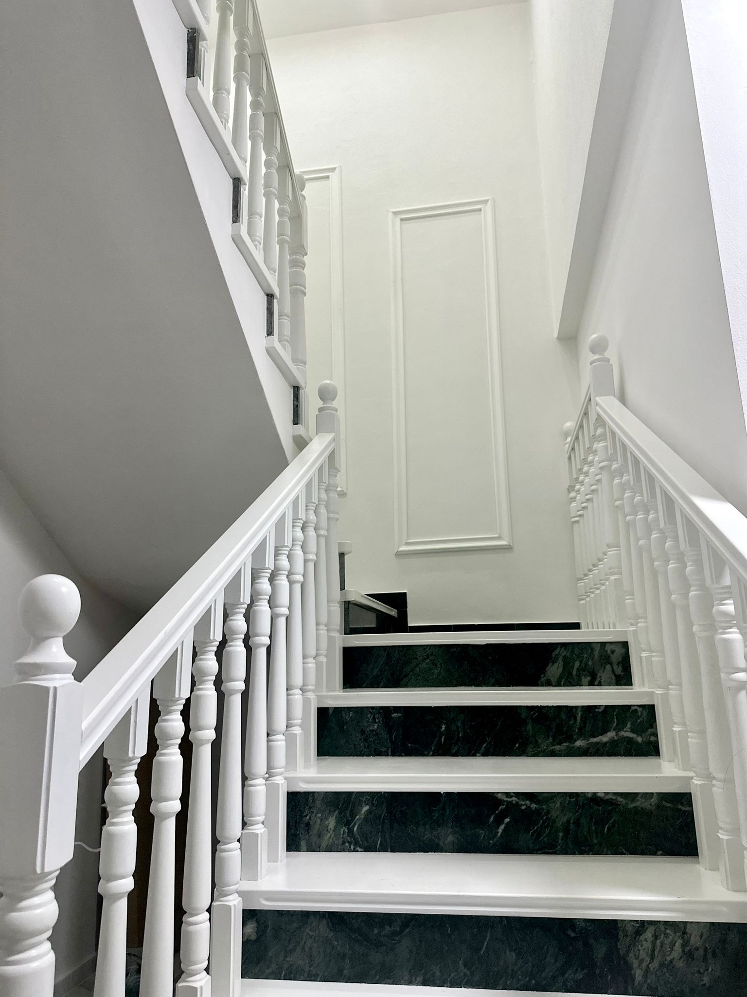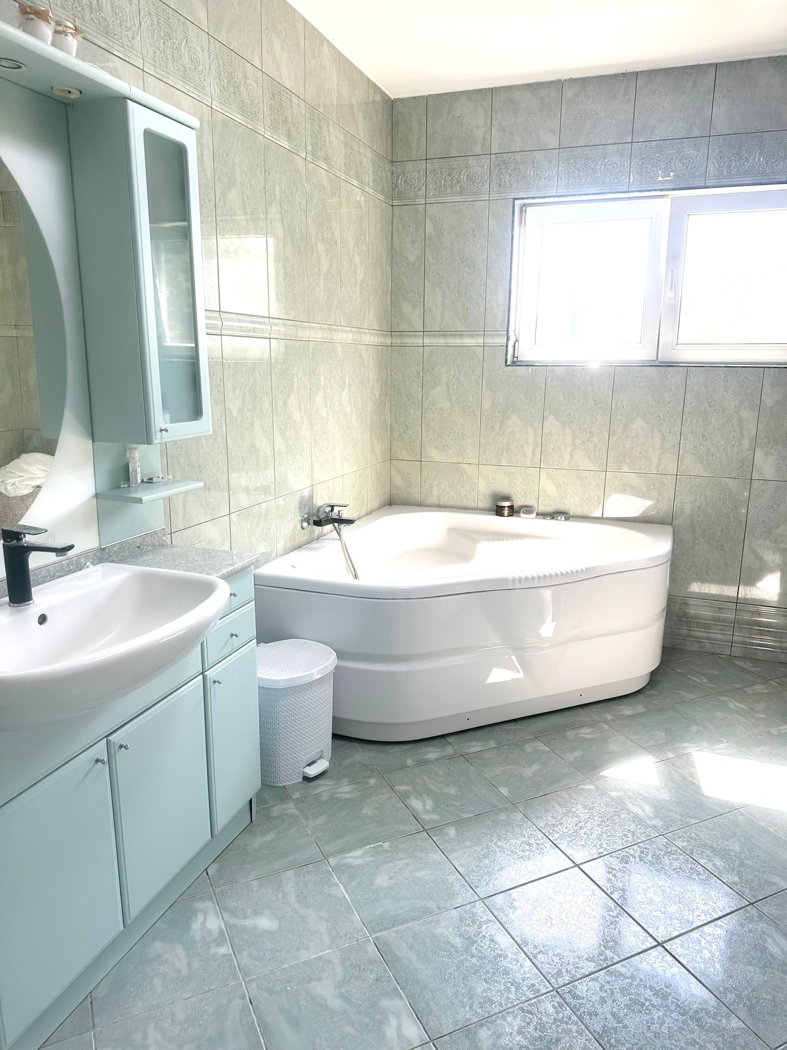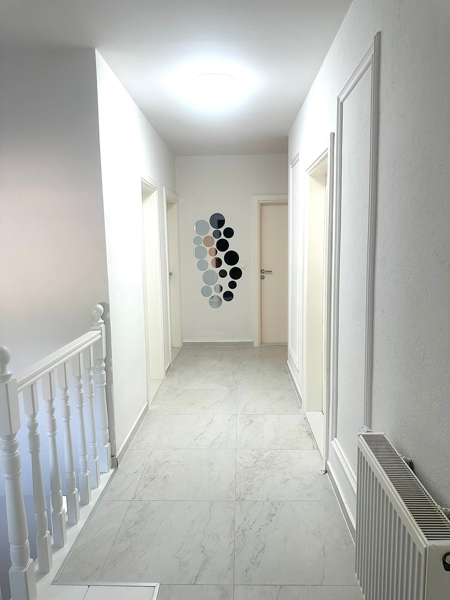Na katu kuće se nalaze četiri spavaće sobe od kojih tri trenutačno imaju bračne krevete s pratećim garderoberima, a jedna je dječija soba. Tri spavaće sobe imaju vlastite balkone, a jedna soba ima prozor. Na katu kuće se nalazi jedno kupatilo s jacuzi kadom, te jedno kupatilo s tuš kabinom.