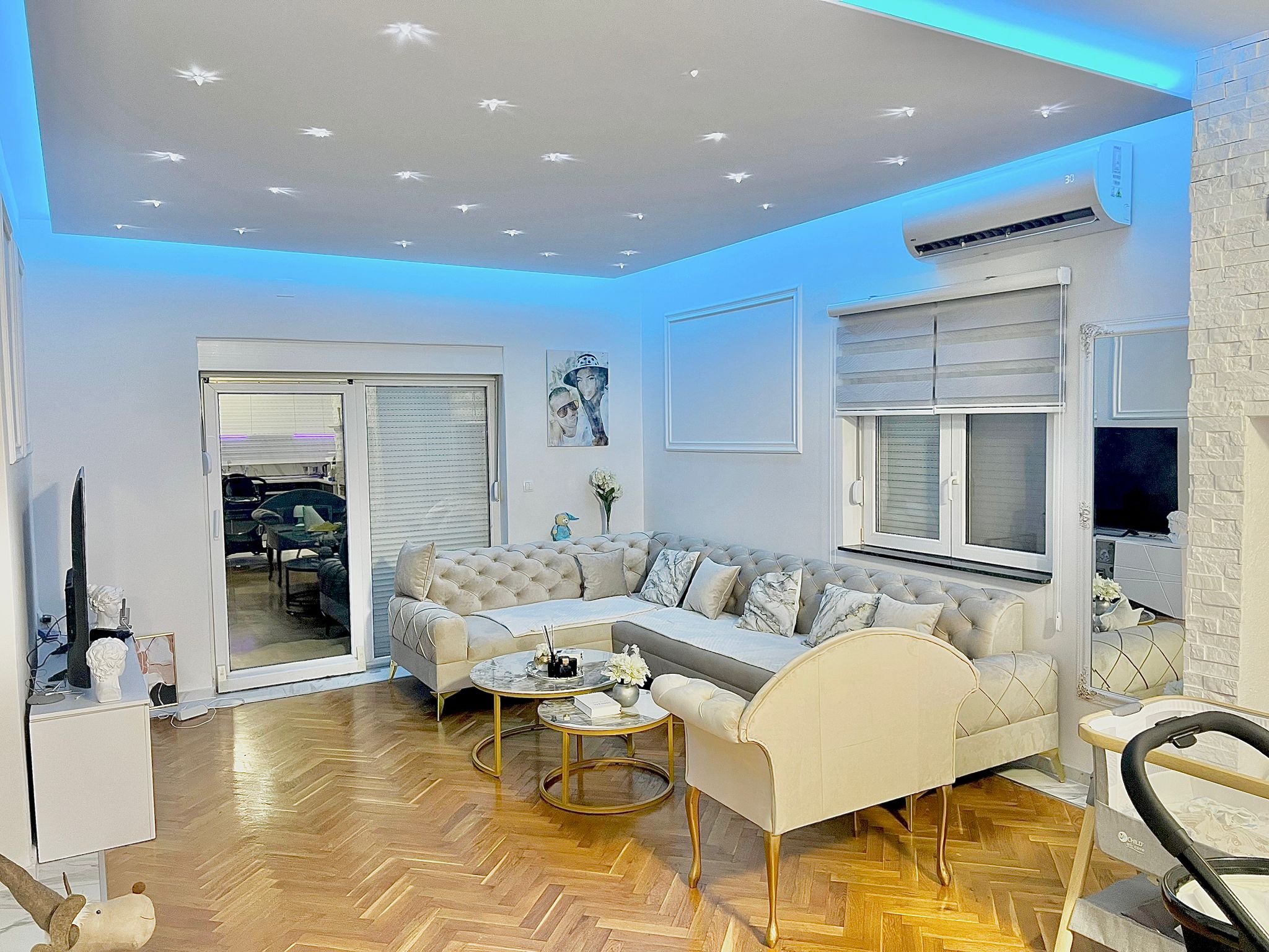 Kuća je klimatizirana, a grijanje je provedeno u svaku prostoriju. Pored toga posjeduje sve elektroničke uređaje koji pružaju visoki konmfor življenja. Ispred kuće je predviđen parking za automobile.