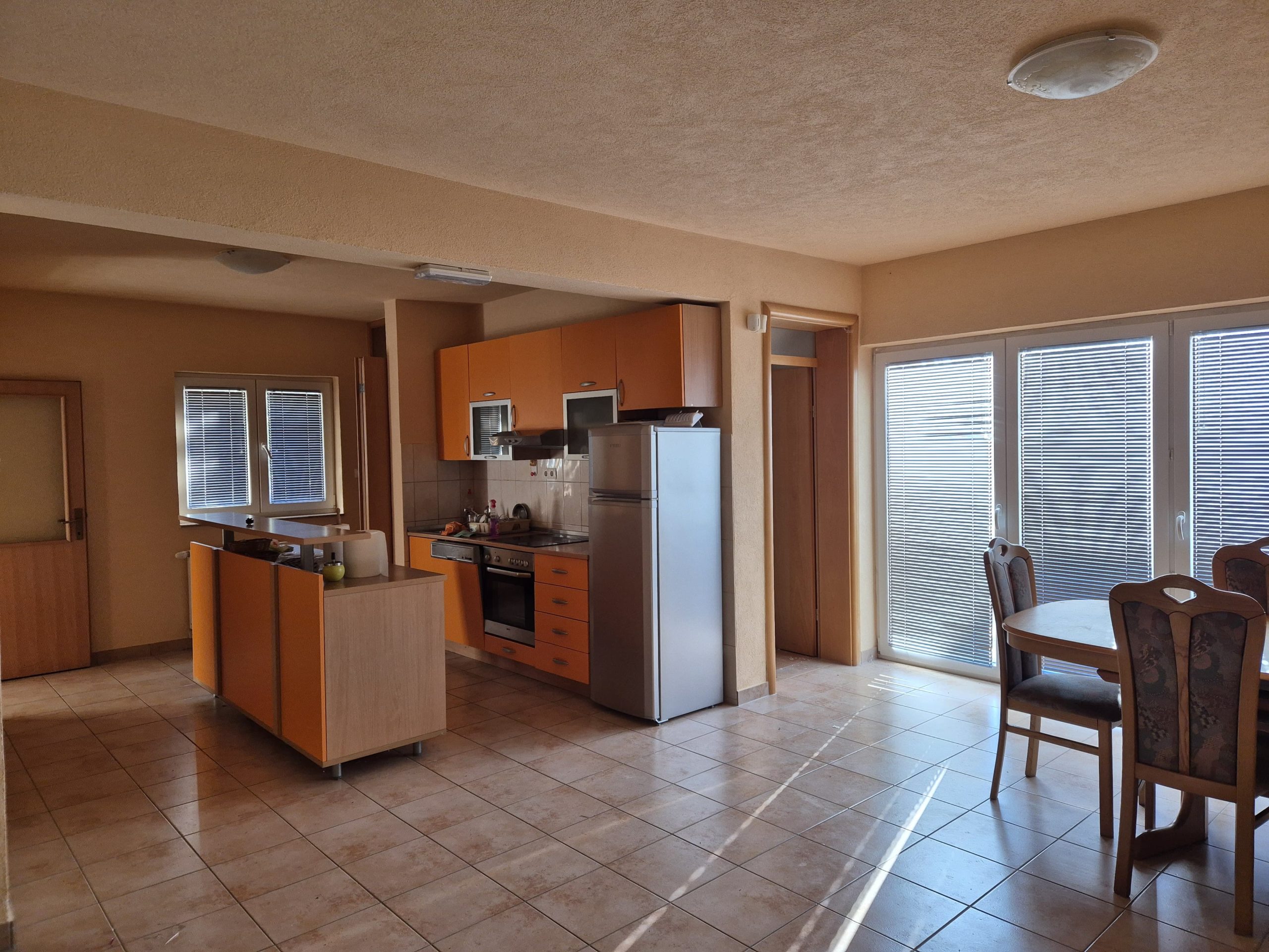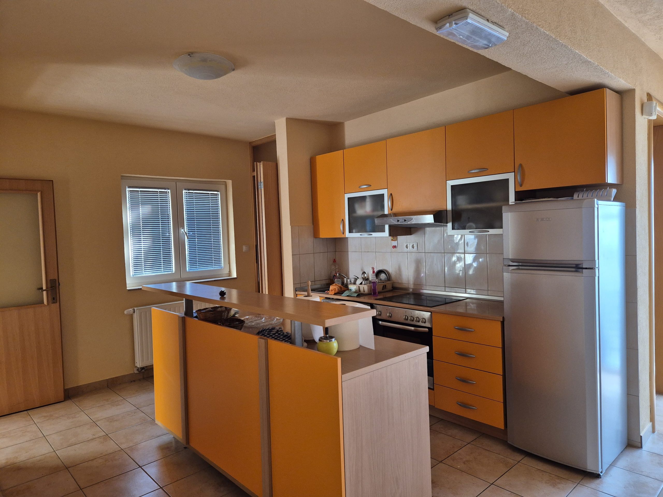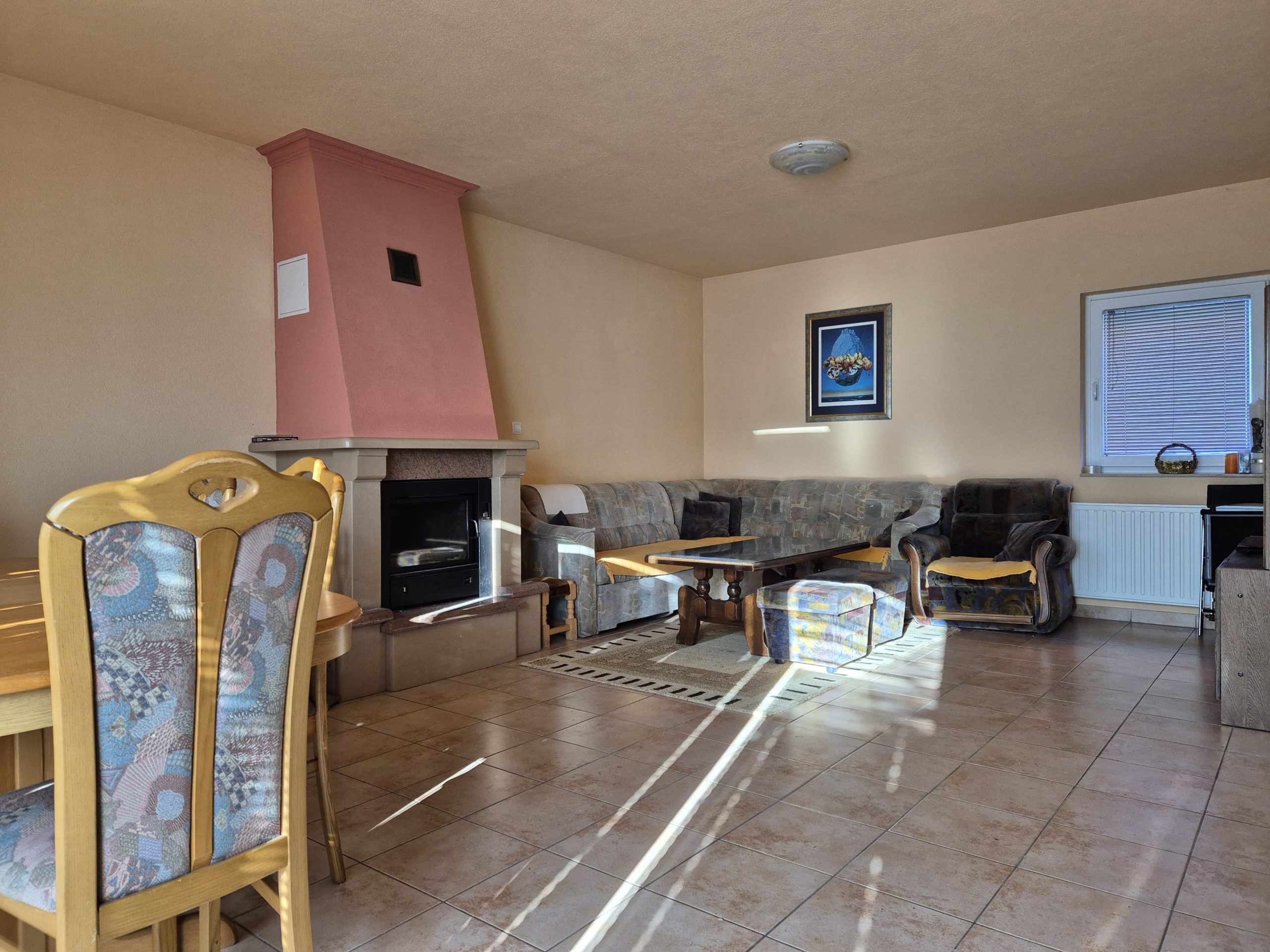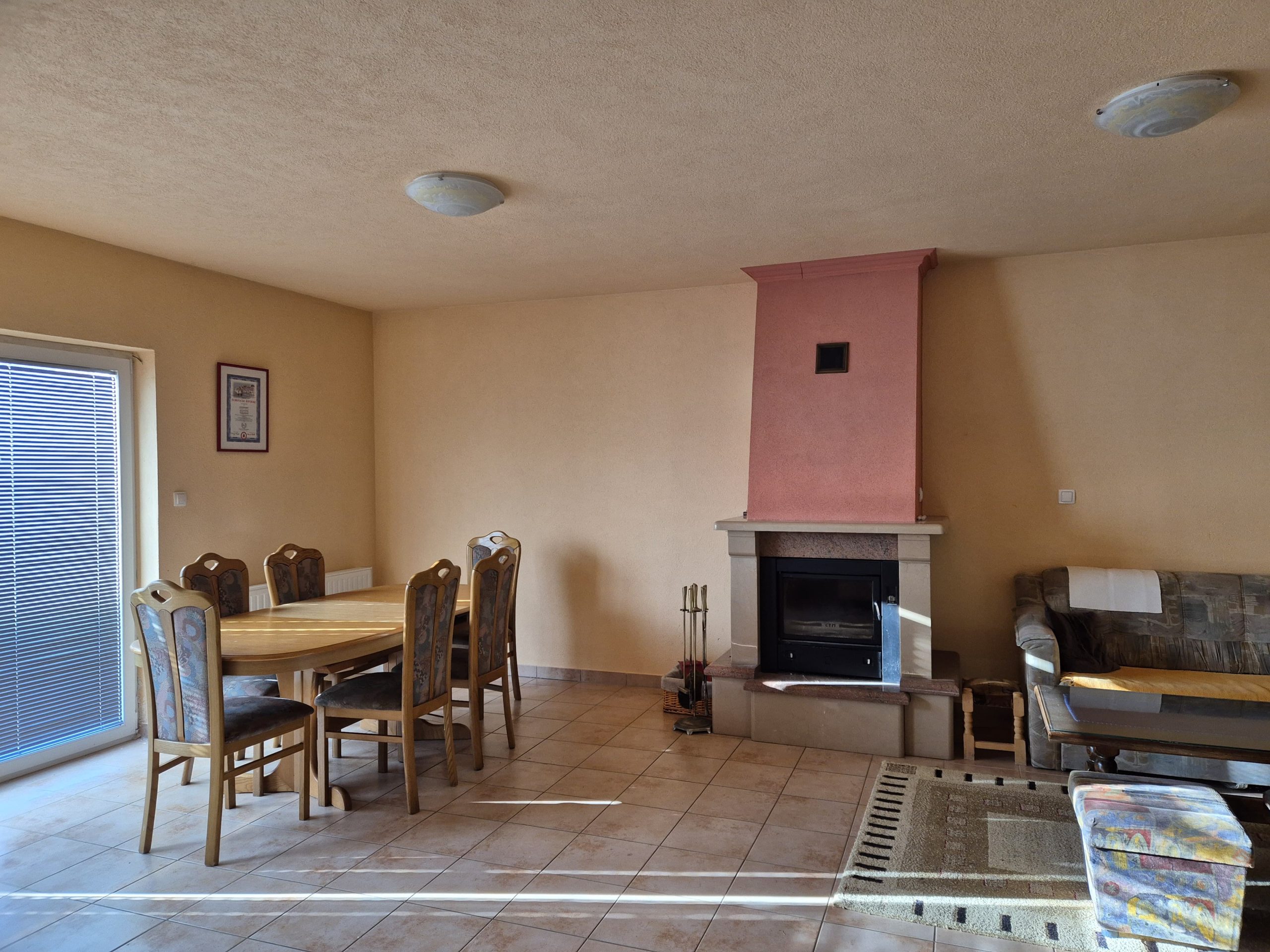 - Prvi kat: prostran dnevni boravak s kaminom, kuhinja s blagovaonicom i izlazom na terasu i WC