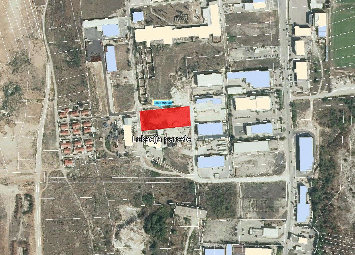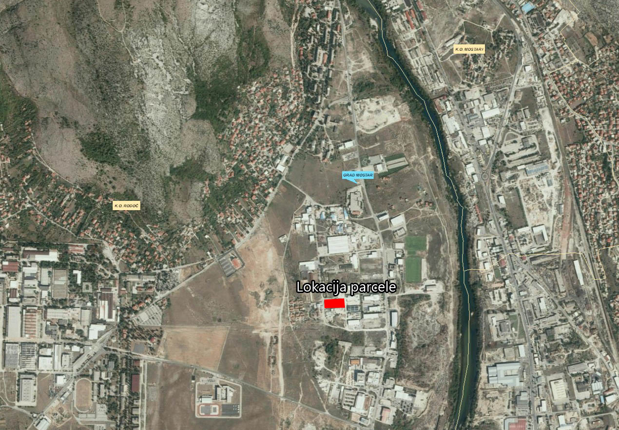 Prodaje se parcela površine 4338 kvadrata u industrijskoj zoni na Bišću polju pored Mostara. Pravilnog je oblika, omeđena prometnicom sa tri strane. Prilaz je moguć asfaltiranom cestom iz Rodoča i makadamskim putem sa ceste za Aluminij. Na parceli postoji instalacija industrijske struje, a neposredno uz parcelu su mogući priključci na vodovod i kanalizaciju. S jedne strane je omeđena zidom, a uz prometnice je omeđena betonskim stubovima.